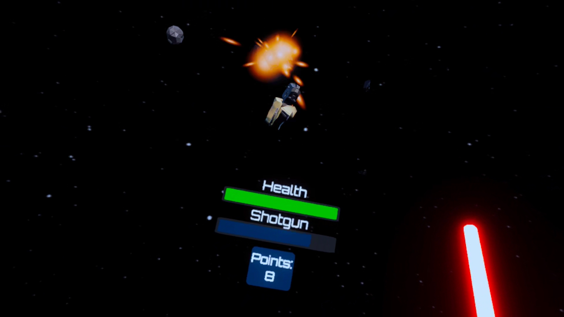 It's just you, your weapon, and your lightsaber against asteroids, drones, and UFOs. Score points and have fun in this virtual reality arcade game.